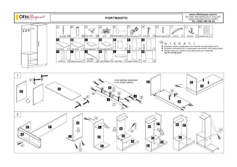 Ağırlık : 1.Paket 25.5 Kg 2. Paket 22.5 Kg